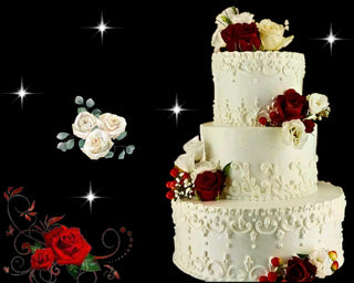 TORTA NUZIALE CON ROSE BIANCHE E ROSSE