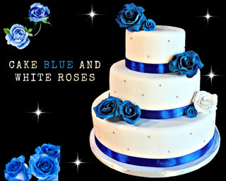TORTA NUZIALE CON ROSE BLU E BIANCHE.
