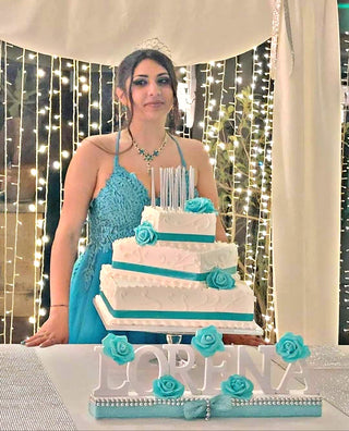 Un 18-esimo compleanno con colori fini e delicati. Splendida torta panna e verde acqua.