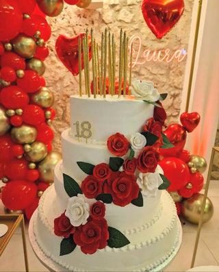 UNO STILE CLASSICO ED ELEGANTE. UNA TORTA DECORATA CON MAGNIFICHE ROSE ROSSE E BIANCHE