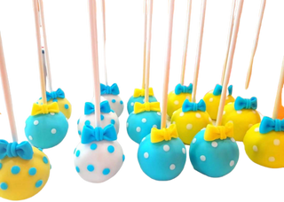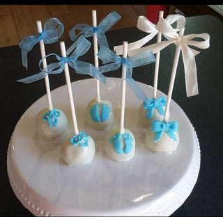 CAKEPOPS NASCITA CON FIORI AZZURRI.