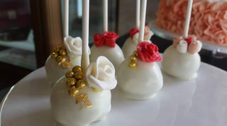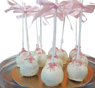 CAKEPOPS BIANCHI CON PALLINE ROSA.